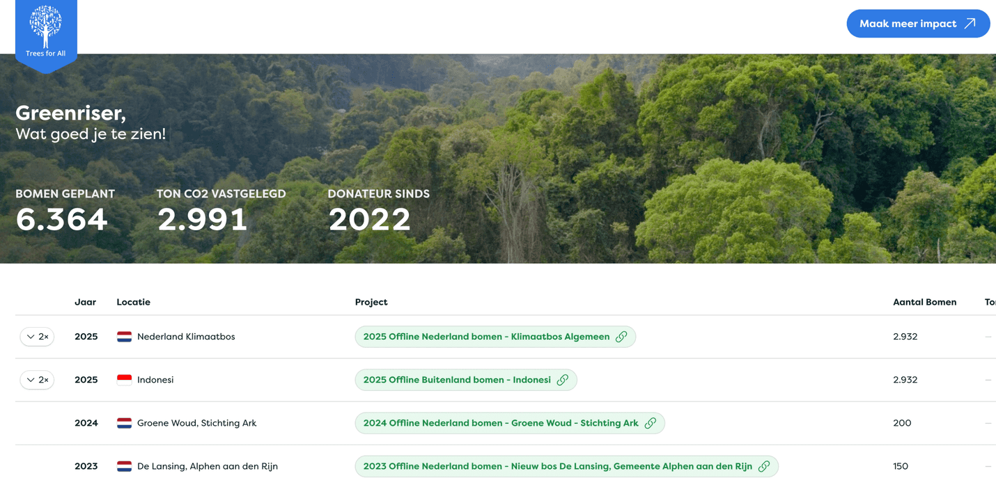 Het dashboard dat we samen ontwikkelen, is een belangrijke stap in deze richting. Het biedt Trees for All straks inzicht in hun projecten en helpt bij het aantrekkelijk maken van bomen planten voor bedrijven en consumenten. Maar misschien wel het belangrijkste: het dashboard gaat de impactmeting digitaliseren. Door nauw samen te werken en feedback op te halen, zorgen we ervoor dat de oplossing precies aansluit bij de behoeften van Trees for All.